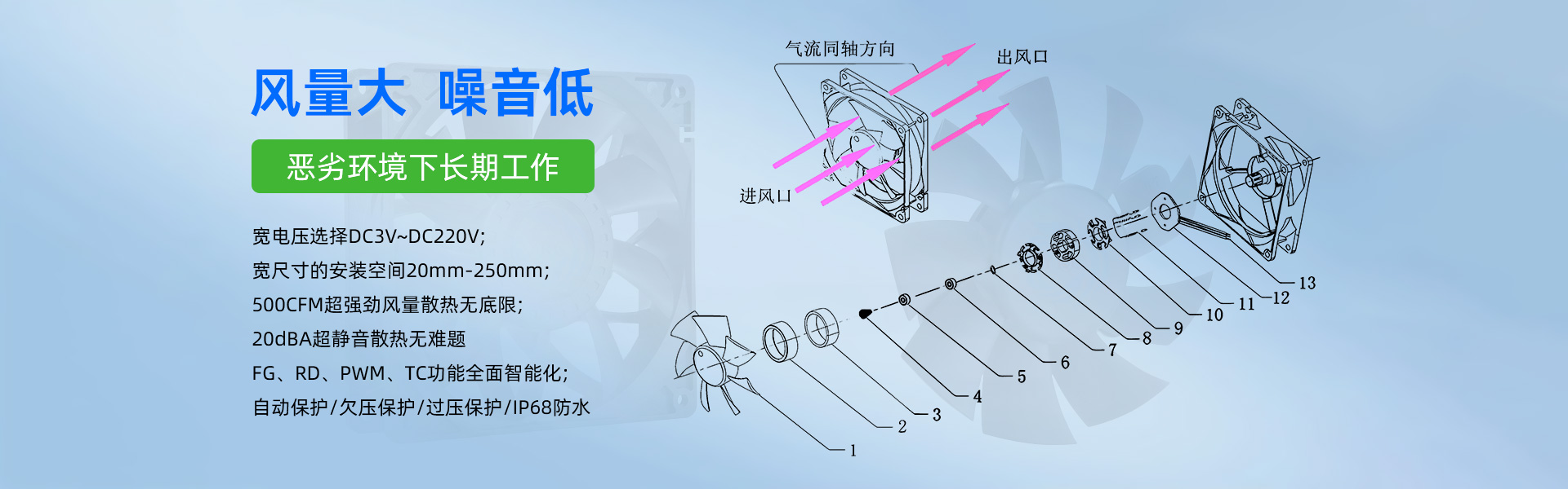 深圳市毅榮川電子科技有限公司于2005年創(chuàng)立于中國深圳、是一家專業(yè)研發(fā)、生產(chǎn)、銷售散熱風(fēng)扇的高科技企業(yè)。所生產(chǎn)的直流風(fēng)扇、交流風(fēng)扇、鼓風(fēng)機(jī)、防水/防塵風(fēng)扇、EC變頻風(fēng)扇、直流散熱風(fēng)扇、汽車散熱風(fēng)扇、靜音散熱風(fēng)扇、支架散熱風(fēng)扇、渦輪增壓風(fēng)扇、直流散熱風(fēng)機(jī)、直流離心風(fēng)機(jī)、直流鼓風(fēng)機(jī)、鼓風(fēng)機(jī)廠家、新能源風(fēng)扇、無刷馬達(dá)等,已廣泛應(yīng)用于:通訊設(shè)備、UPS電源、醫(yī)療器械、電焊機(jī)、工控設(shè)備、家用電器、空氣凈化行業(yè)、汽車行業(yè)、投影儀、美容儀器、運(yùn)動(dòng)器材等行業(yè)領(lǐng)域。